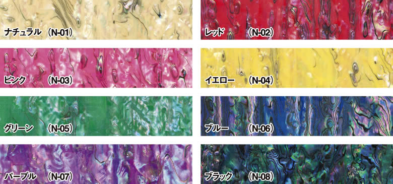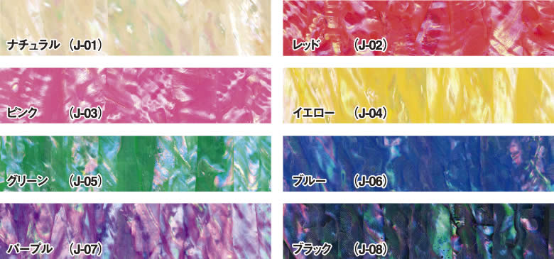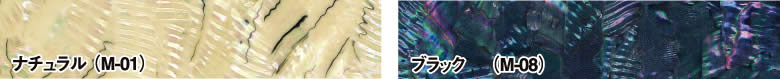 ![]() メキシコ地方原産のアワビで、独特な縞模様とグリーンを基調にブルー、ピンク等の色が交じり合った色合いが特徴の貝です。古くから高級装飾としてナイフの柄、漆器や工芸品等として利用されてきました。古くからルアーにも多く使われており、安定した細かいピッチで多くの光を放つのが特徴です。《希少性 ★》 |